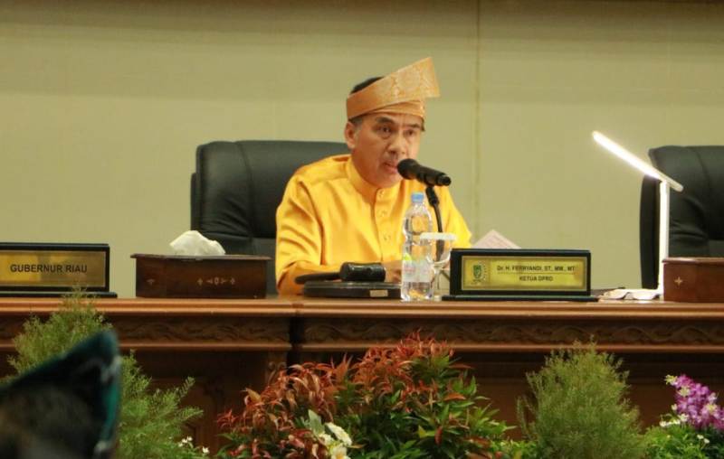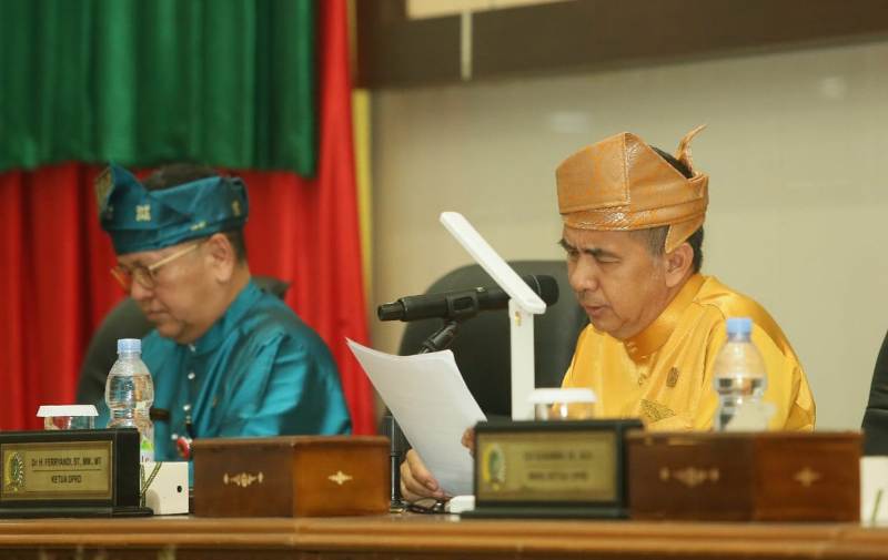 Kegiatan yang berlangsung khidmat di Gedung DPRD, Jalan HR Soebrantas Tembilahan ini dipimpin langsung oleh Ketua DPRD Dr H Ferryandi ST MM MT didampingi para Wakil Ketua DPRD, serta dihadiri Bupati HM Wardan, Gubernur Riau diwakili Asisten Administrasi Umum Sekda dan unsur Forkopimda.