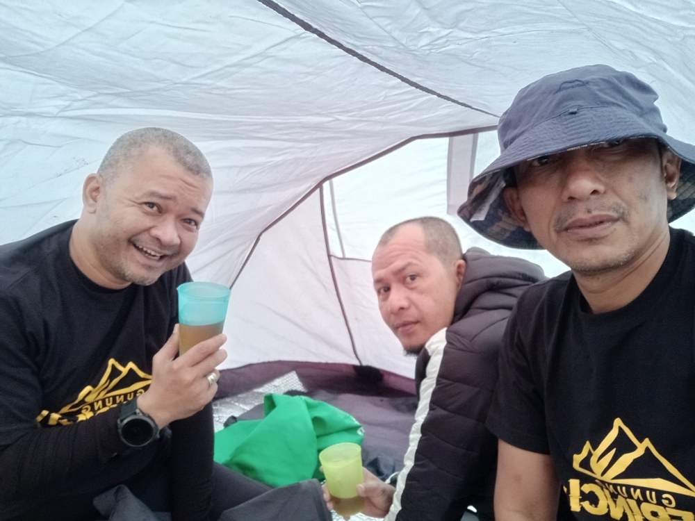 Tepat pukul 06.00 wib, mulut ini terasa penuh sekatan, begitu sulit untuk berucap. Hanya rasa syukur yang teramat sangat kami telah dibawahNya ke puncak tertinggi di Pulau Sumatera.