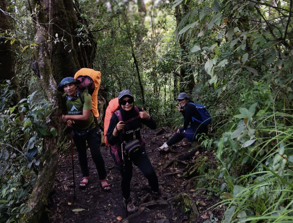 Meskipun sangat menguras tenaga, tenaga kami terasa terus dipompa sehingga segar kembali dengan kicauan burung dan kehadiran burung jalak yang selalu mengikuti seakan-akan memberikan petunjuk Jalan. Keasrian dan kesegaran vegetasi hutan yang terawat membuat kami begitu menikmatinya.