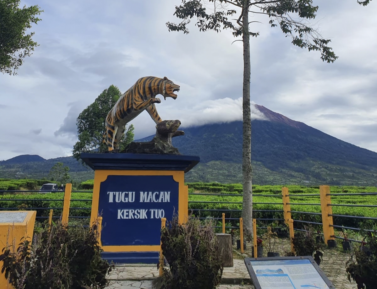 Bila kita mulai menjajaki kaki di Kersik Tuo, Kayu Aro, Jambi, seketika kita melihat "Tugu Macan" yang langsung membawa pikiran kita kepada raja rimba belantara yang menakutkan.
