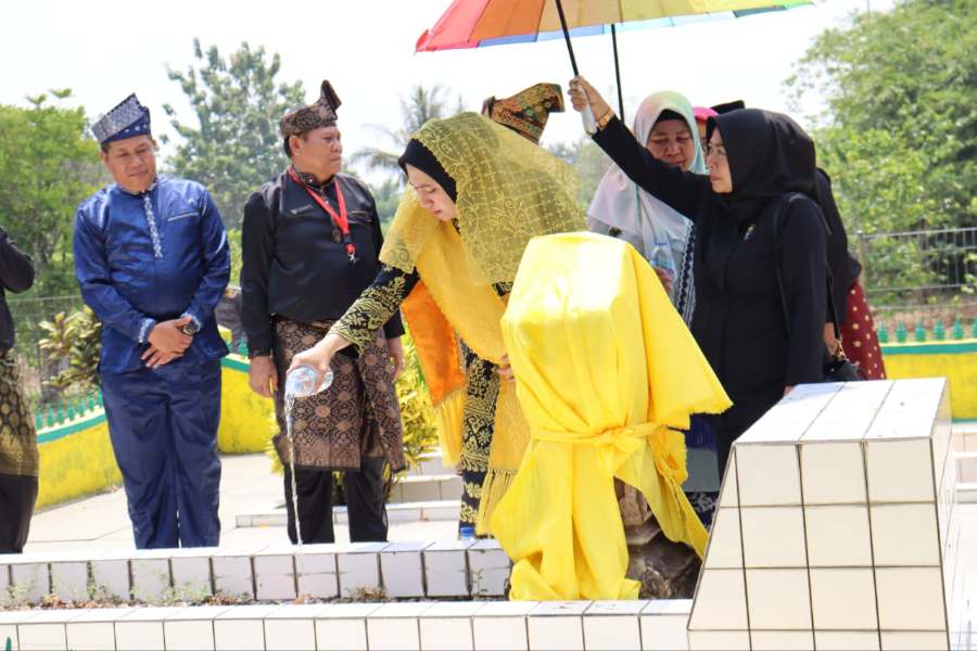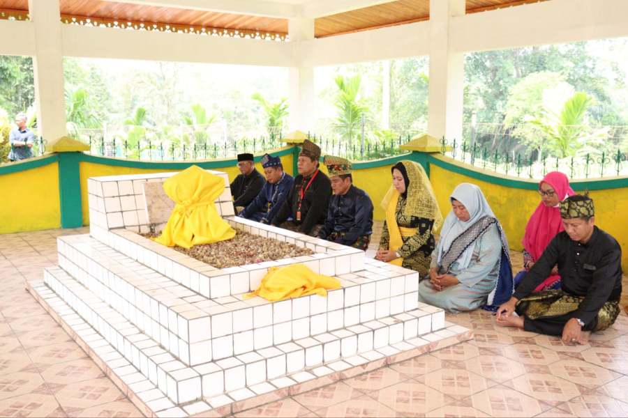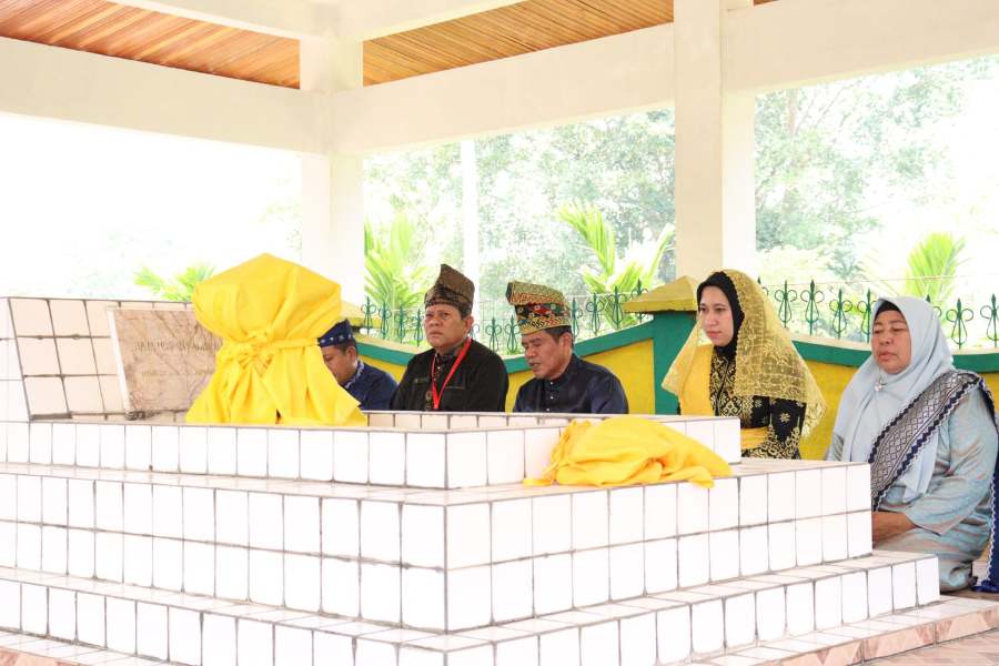 Selesai upacara penganugerahan gelar kehormatan di Museum Rumah Tinggi Kecamatan Rengat, Bupati Inhu berziarah ke Komplek Makam Raja-raja Indragiri Rengat dan dilanjutkan ke Komplek Makam Raja Indragiri Kota Lama. (*15/adv)