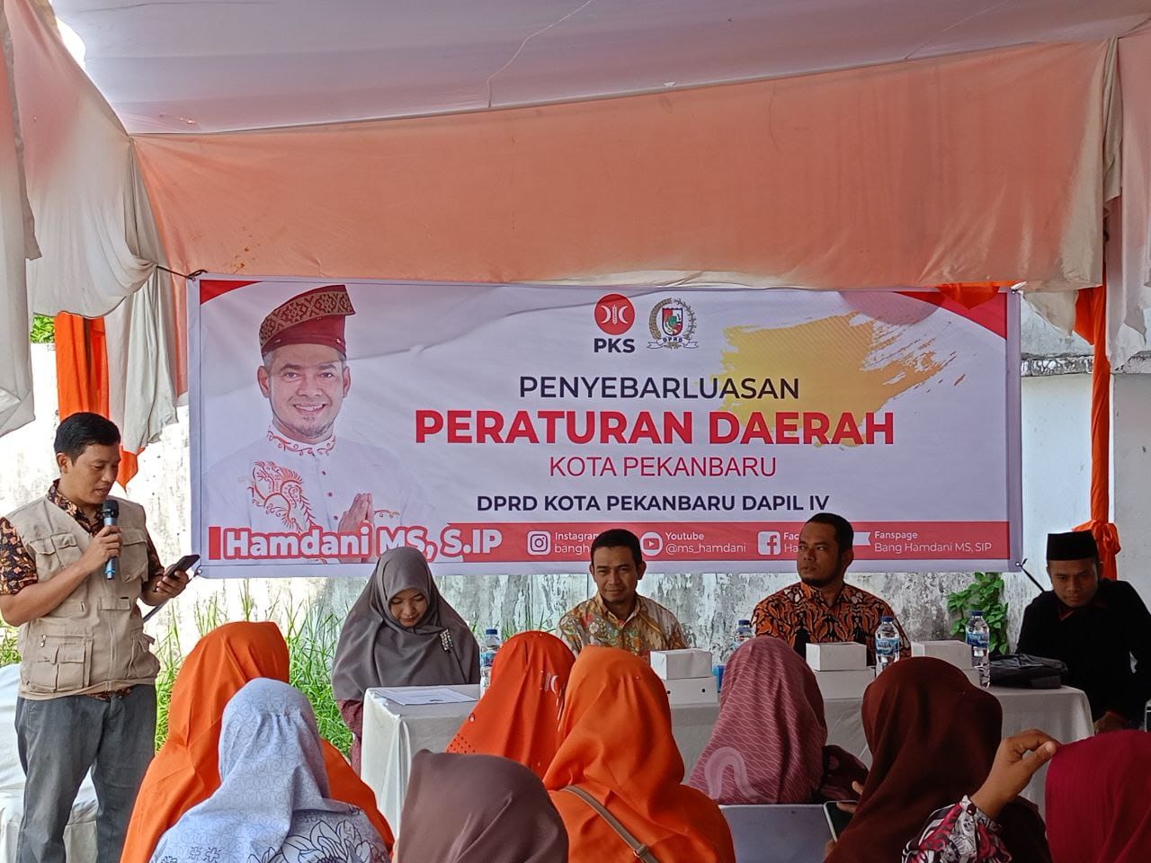 PEKANBARU, LIPO - Anggota DPRD Kota Pekanbaru Hamdani MS SIP melaksanakan penyebarluasan Perda Kota Pekanbaru tentang Tanggung Jawab Sosial dan Lingkungan Perusahaan di wilayah daerah pemilihan IV, selama 4 hari di 6 lokasi, dimulai Selasa tanggal 14 hingga 17 November 2023.