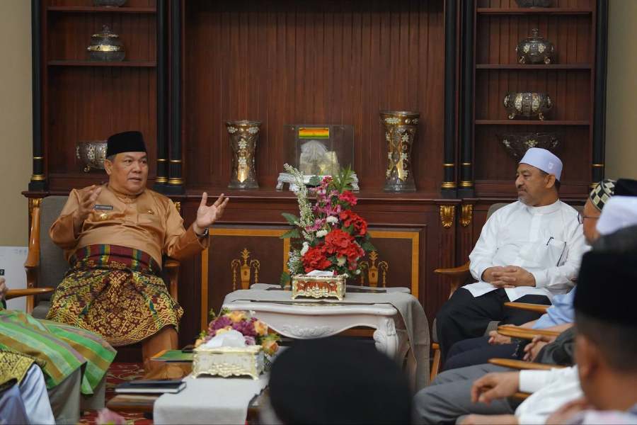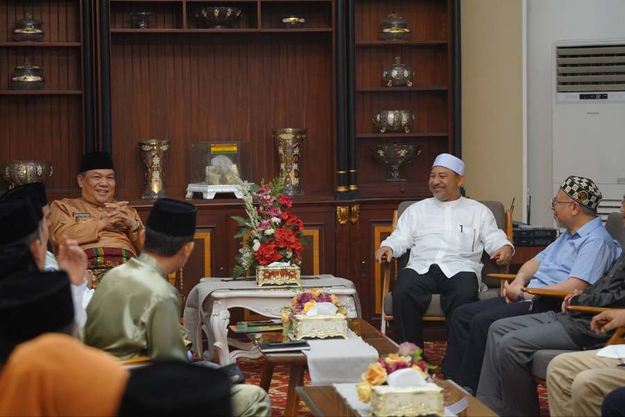 PEKANBARU, LIPO - Pj Gubernur Riau (Gubri) SF Hariyanto menerima kunjungan dari Menteri Basar Kelantan, Datuk Mohd Nassuruddin Daud beserta rombongan. Kegiatan tersebut berlangsung di Rumah Dinas Gubernur Riau, Kota Pekanbaru, Jumat (22/03/2024).