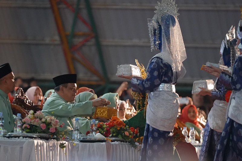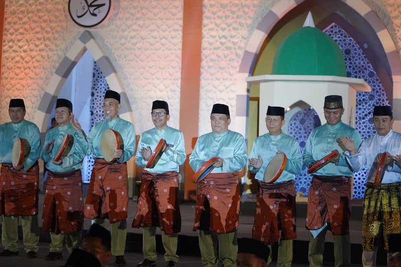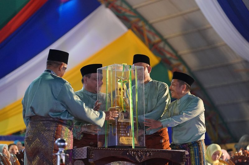 Bersama Forum Koordinasi Pimpinan Daerah (Forkopimda) Provinsi Riau dan Kepala Daerah Kabupaten/Kota se Riau, Gubernur Riau memukul kompang sebagai tanda MTQ ke-42 resmi digelar.