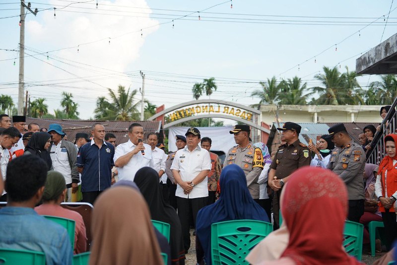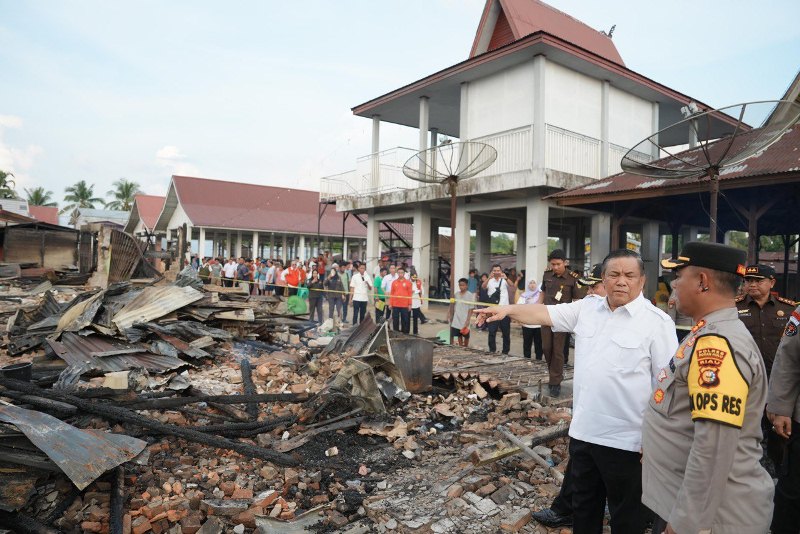 ROHUL, LIPO - Penjabat (Pj) Gubernur Riau SF Hariyanto menyempatkan diri mengunjungi korban kebakaran di kawasan Pasar Langkitin, Kecamatan Rambah Samo, Kabupaten Rokan Hulu (Rohul), Rabu (12/6/2024).