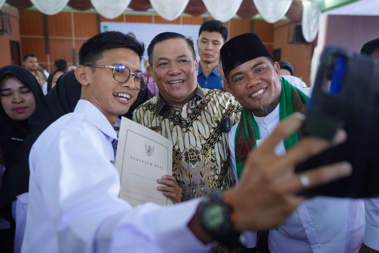 "Alhamdulillah pada hari ini, penantian bapak dan ibu semua menjadi kenyataan sebagai PPPK di Provinsi Riau. Gimana bapak, ibu, dan adik-adik, senang tidak?, bahagia hari ini?," ucapnya.