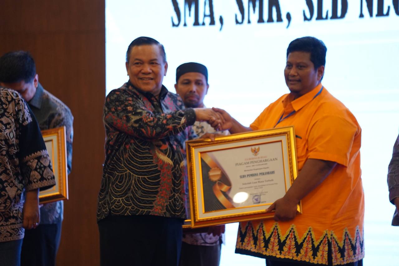 Penghargaan ini diserahkan Pj Gubri saat menghadiri diseminasi perencanaan berbasis data yang diikuti oleh Kepala Sekolah (Kepsek) SMA, SMK, SLB negeri dan swasta se-Provinsi Riau. Acara ini diselenggarakan di Hotel Aryaduta Pekanbaru, Kamis (11/7/2024).