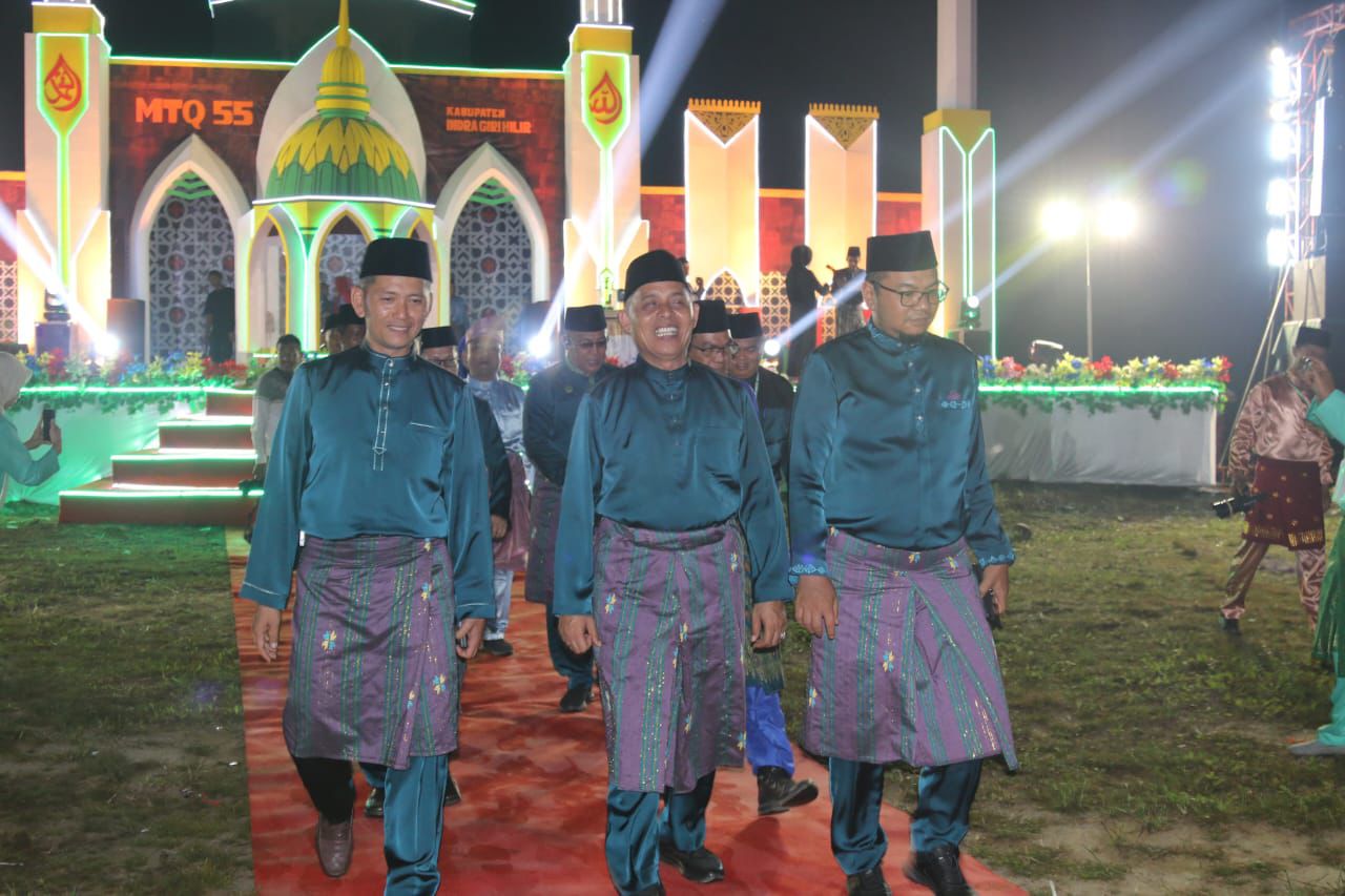 TEMBILAHAN, LIPO - Bupati Indragiri Hilir (Inhil) H Herman didampingi Ketua TP PKK Hj Katerina Susanti secara resmi membuka Musabaqah Tilawatil Qur’an (MTQ) ke-55 Tingkat Kabupaten Indragiri Hilir tahun 2025, Rabu 29 Oktober 2025.