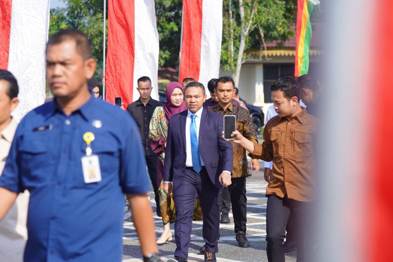 Gubri Abdul Wahid menuju tempat upacara peringatan HUT Bhayangkara 2025.