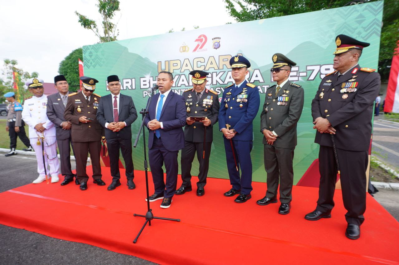 Gubri Abdul Wahid menyampaikan sambutan dan ucapan selamat pada HUT Bhayangkara 2025.