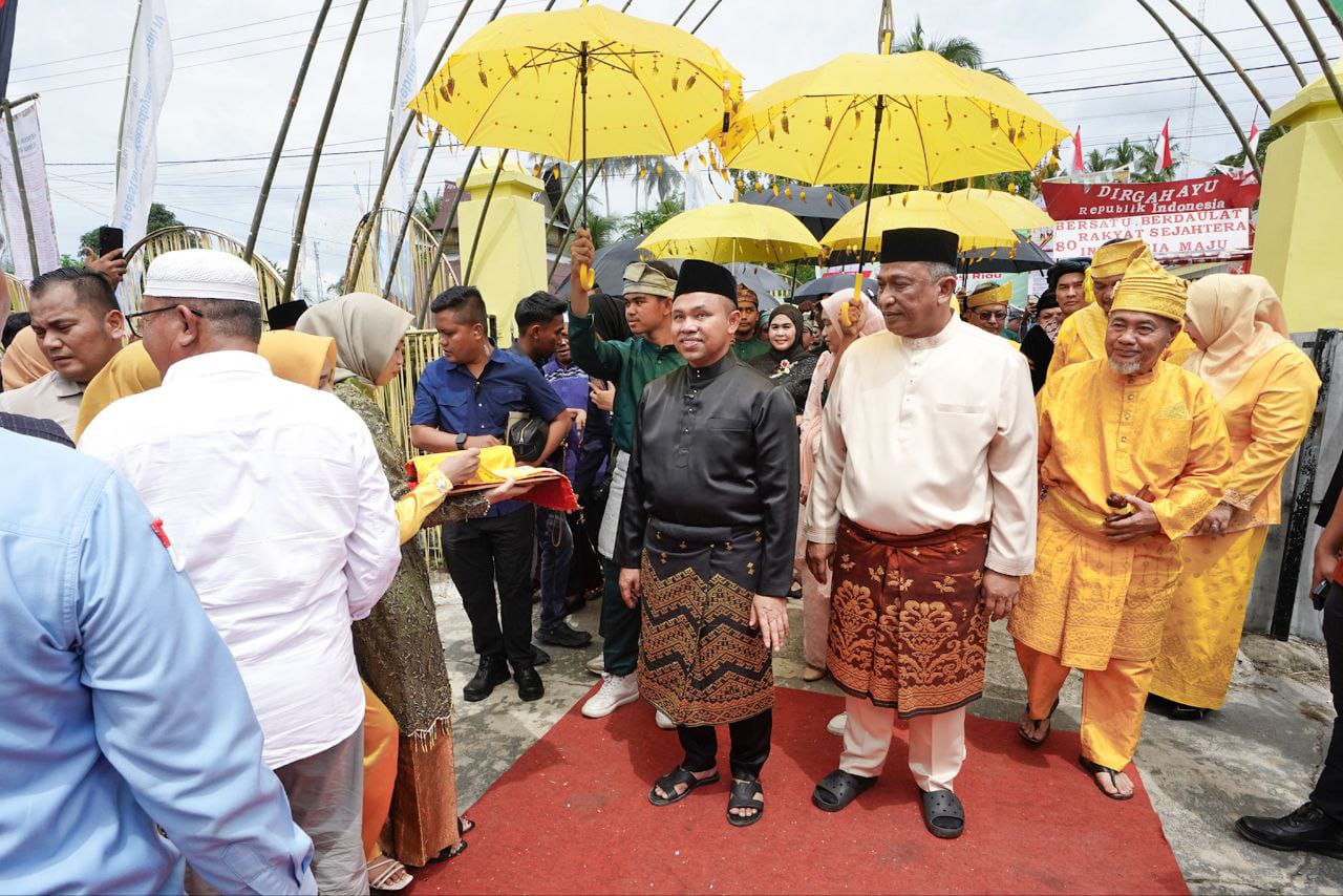 Gubernur Riau, Abdul Wahid disambut saat hadir untuk meresmikan kembali Istana Kerajaan Rokan.