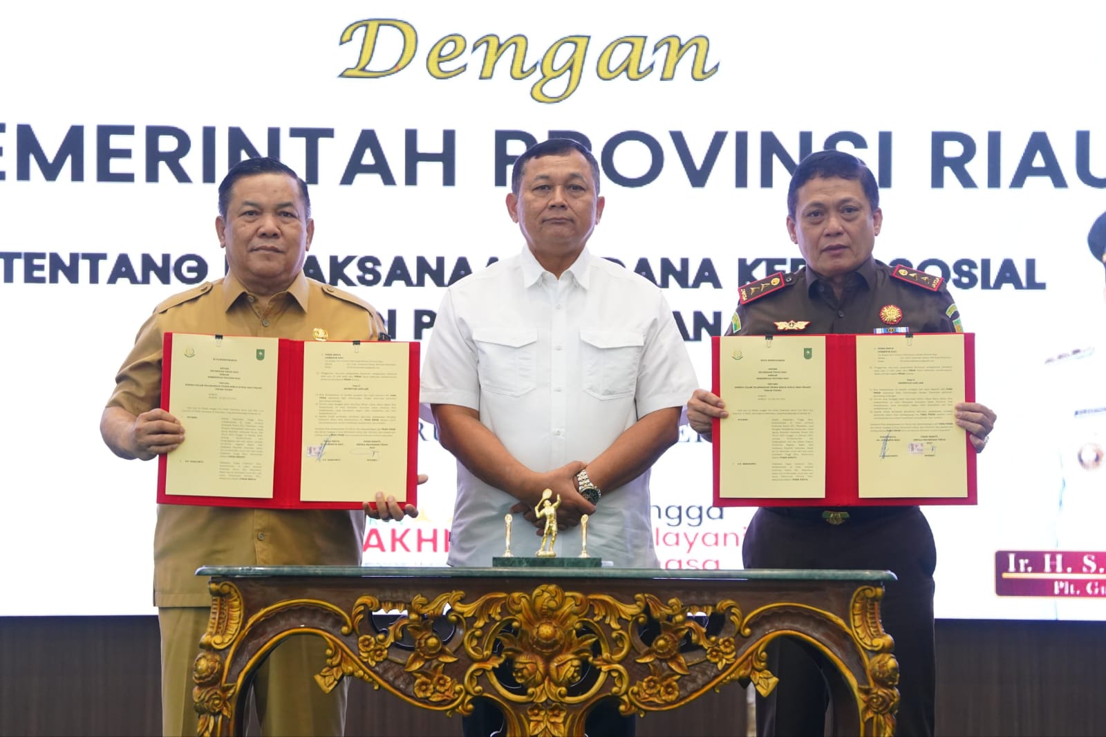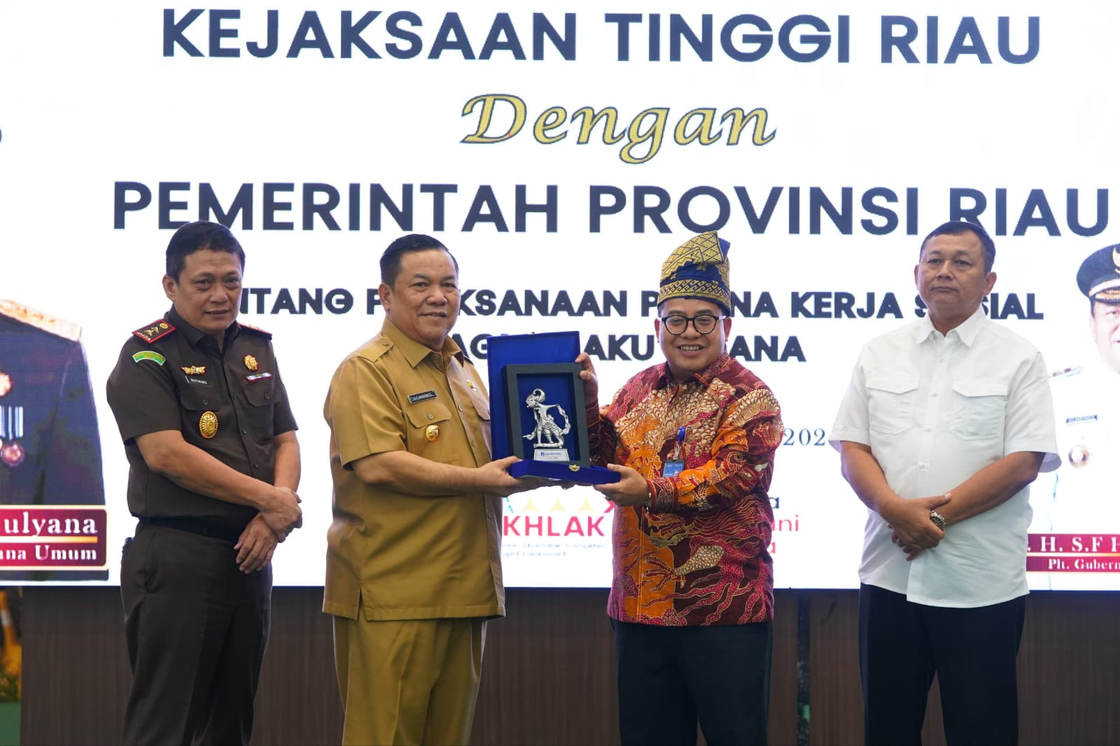 Pemprov Riau dan Kejati Riau usai menandatangani Nota Kesepahaman terkait pelaksanaan pidana kerja sosial bagi pelaku tindak pidana ringan.