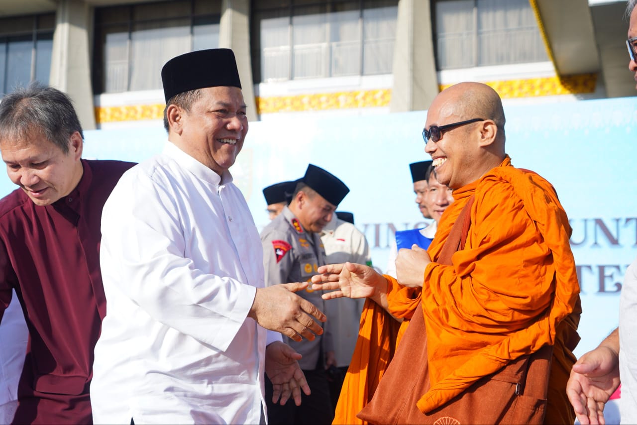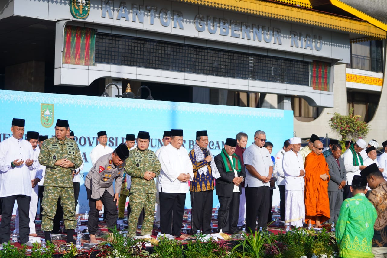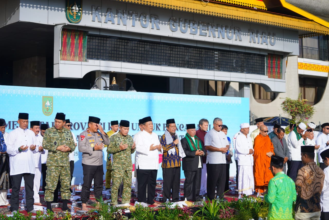 PEKANBARU, LIPO - Udara pagi di halaman Kantor Gubernur Riau terasa lebih hening dari biasanya. Rombongan jemaah sebagian memejamkan mata, sebagian lagi menunduk dalam diam. Di bagian depan, para tokoh agama dari berbagai keyakinan berdiri sejajar, memimpin doa untuk saudara-saudara yang tengah berjuang menghadapi bencana alam di Aceh, Sumatera Utara, dan Sumatera Barat.