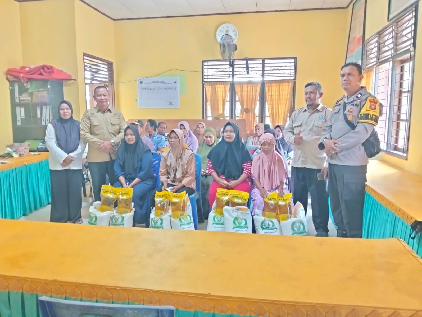 Selain menyerahkan BLT DD, Kepala Desa juga menyerahkan bantuan sembako dari Bulog Inhu untuk 144 orang berupa beras dan minyak goreng.