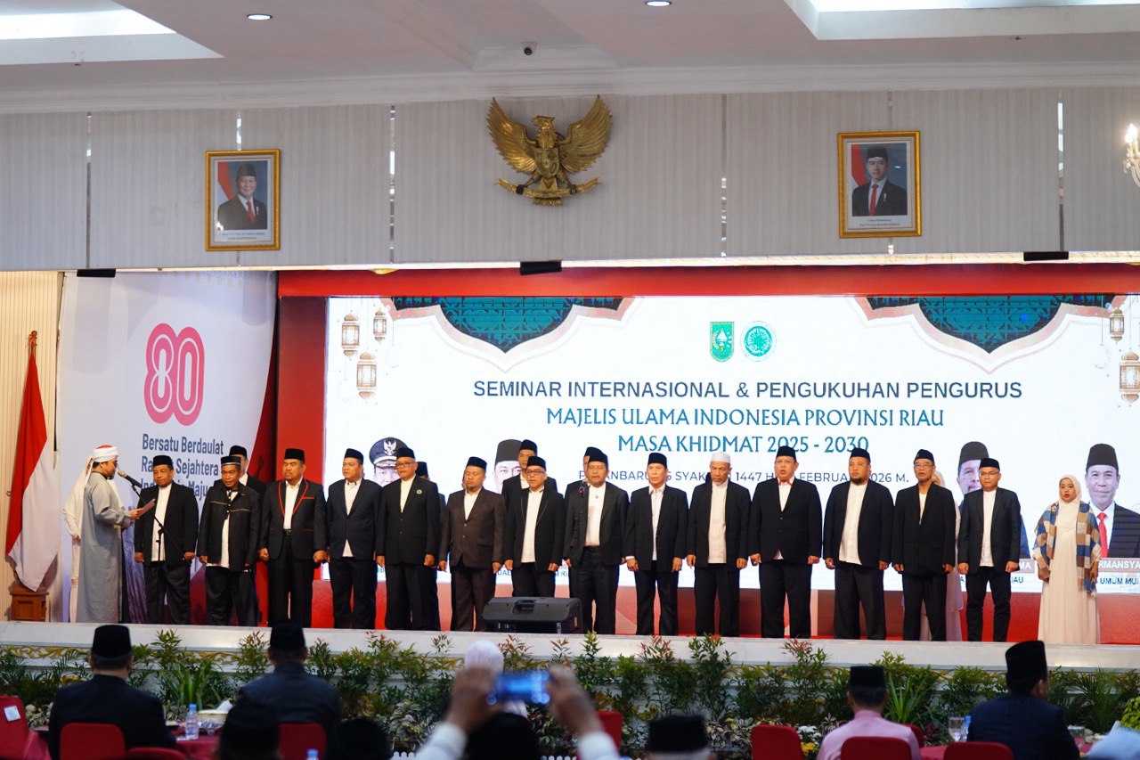 Kepengurusan Majelis Ulama Indonesia Provinsi Riau masa khidmat 2025–2030 resmi dikukuhkan di Gedung Daerah Balai Serindit, Jalan Diponegoro Pekanbaru,